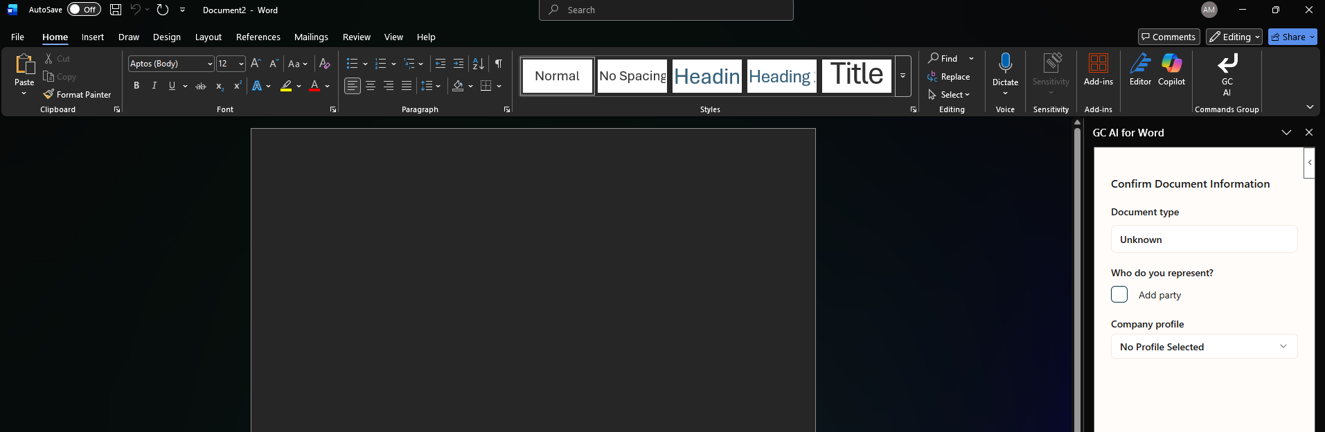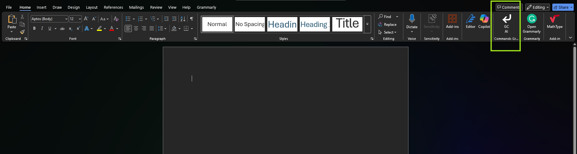 - When you open Word again you will see the GC AI Add in on the bar.