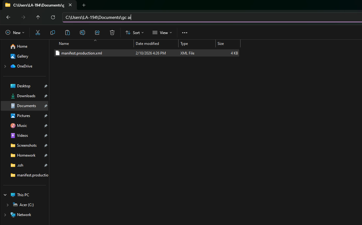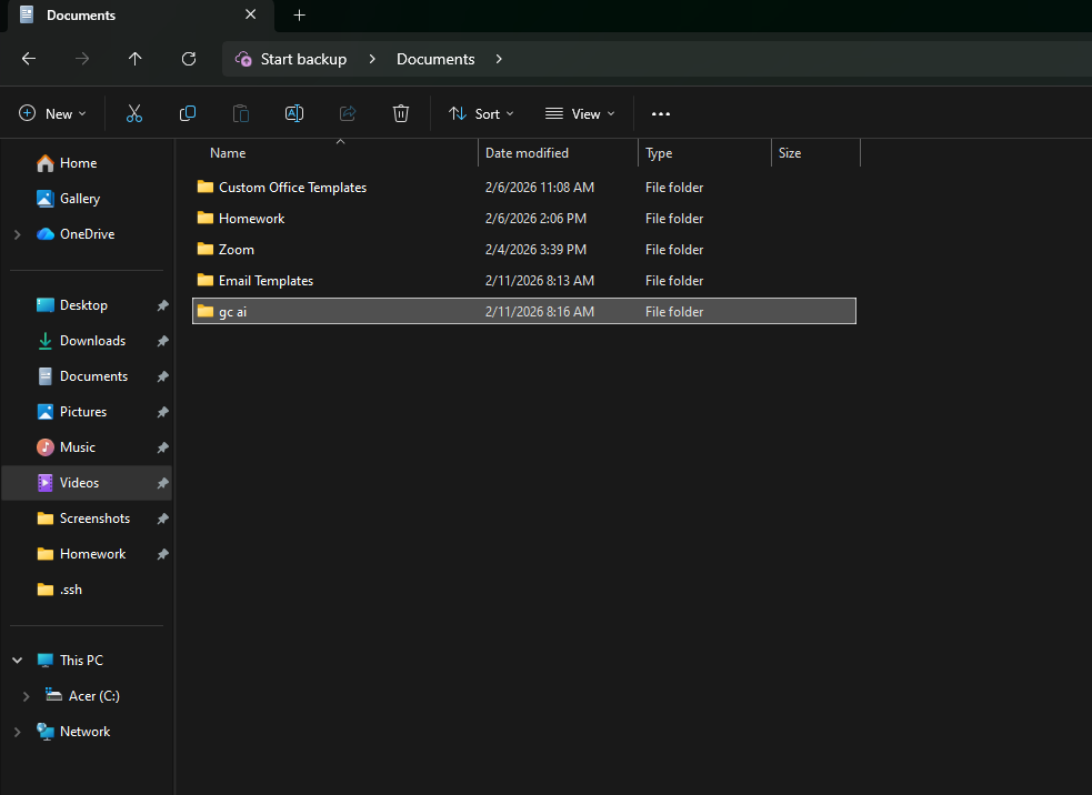 - Create a new folder, you can name it anything you want, for this example I named it: gc ai