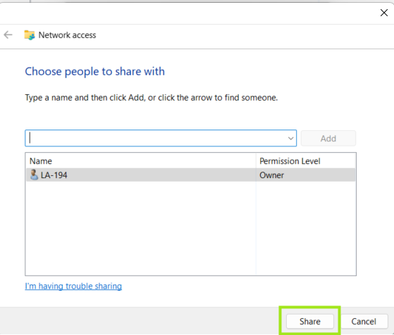 This guide is for Windows users. The steps involve sharing a local folder via Windows network sharing.