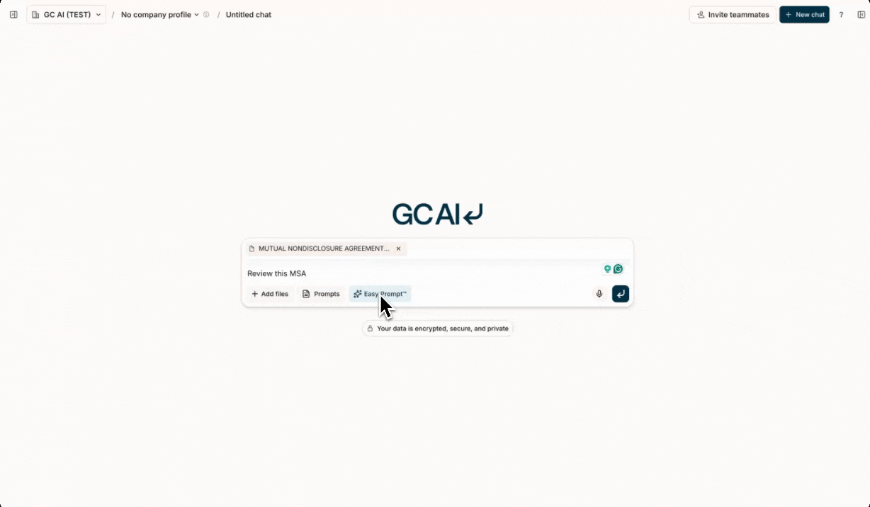 Easy Prompt transforms your basic prompts into more effective, AI-readable formats. You get better responses from GC AI with minimal effort.